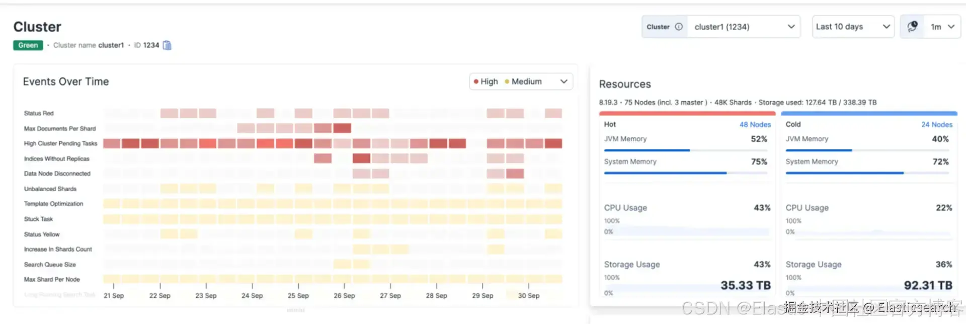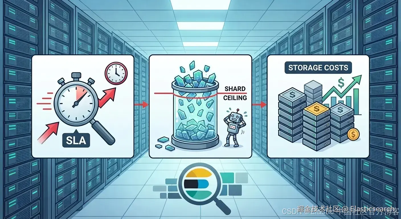 Elasticsearch 没有硬性的大小限制。生产集群可以运行在 PB 级规模。但"过大"通常体现在三个方面:查询速度慢到超出你的服务级别协议( SLA ),某个节点达到其分片上限,或者由于所有数据都存放在同一高成本存储层而导致存储成本失控。本指南将介绍这些信号、关键指标以及应对方法。