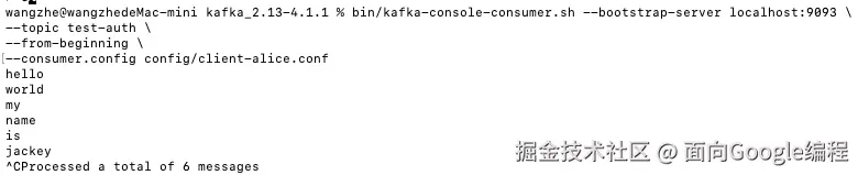 至此,我们完整了一整套 SASL/SCRAM 认证机制的配置与验证。不知道你在配置过程中有没有遇到什么问题,如果有的话可以随时与我进行交流。