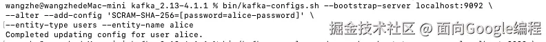 --alter --add-config 'SCRAM-SHA-256=[password=alice-password]' \