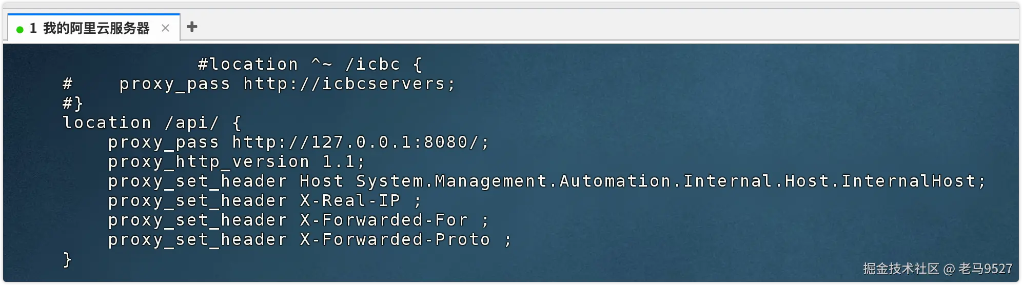 等待一会后,通过 ssh 查看到 nginx 的 conf 内容增加了如下内容: