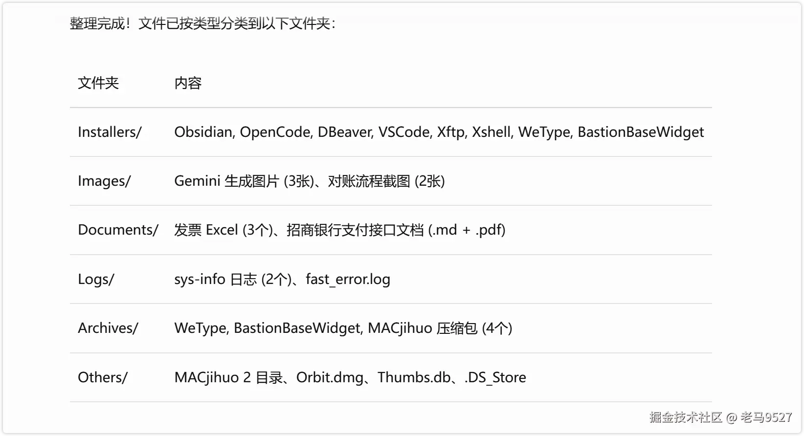 整理完成后还有整理说明: