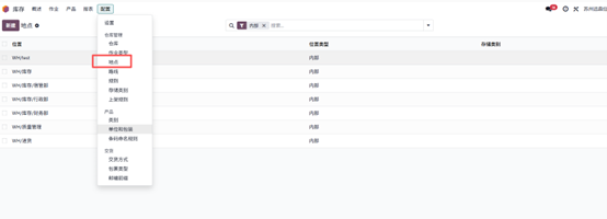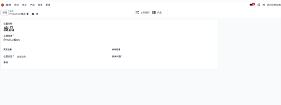 为规范管理废品,需在库存系统中创建废品库位。操作路径为:库存 > 配置 > 库位 ,如下图所示。