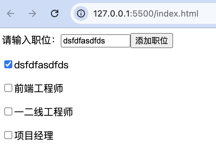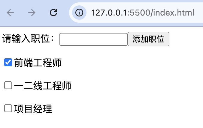 在输入框中输入新的职位,单击"添加职位"按钮后,向职位数组开头添加了一个新职位,结果如图所示。