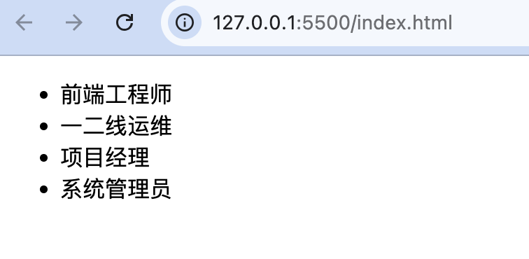 - 标签循环渲染,输出数组中存储的职位名称。代码如下:
