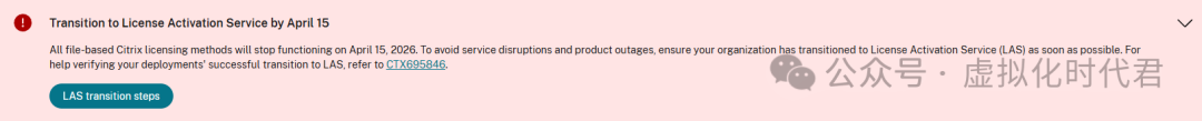 2025 年 9 月 8 日,Citrix 正式宣布终止传统基于文件的许可证系统(File-Based Licensing),并要求所有客户在 2026 年 4 月 15 日前迁移至许可证激活服务(License Activation Service,简称 LAS)。届时,所有 .lic 文件将停止验证,仍依赖文件许可证的产品将丧失功能。