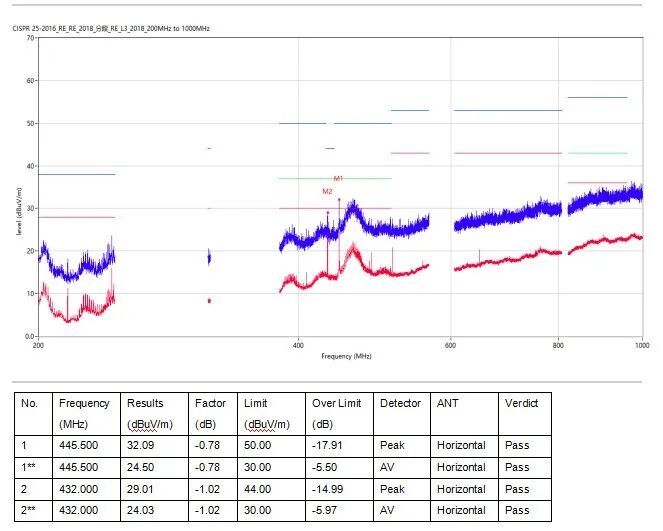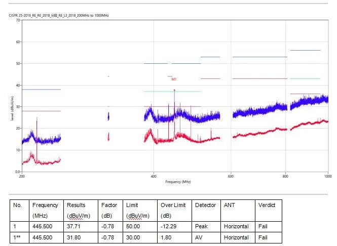 某款行车记录仪的辐射测试结果显示,445.5MHz频点存在超标现象。经分析,该问题源于视频解码芯片TP9950向主控传输的PCLK时钟信号。在整改过程中,尝试采用以下两种措施: