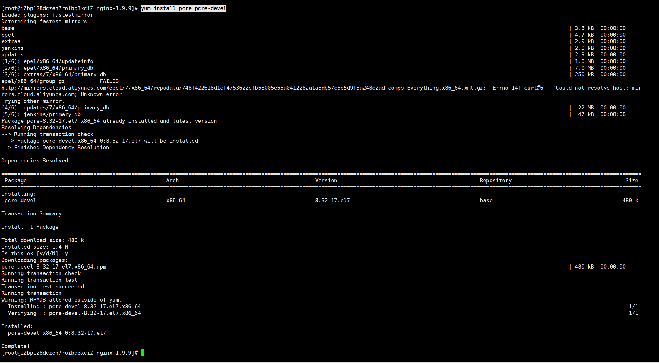 大致意思是我的linux环境缺少了PCRE库. 那就安装一下吧: