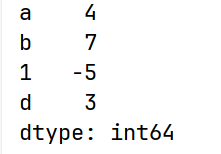s = pd.Series([4, 7, -5, 3], index=["a", "b", 1, "d"])