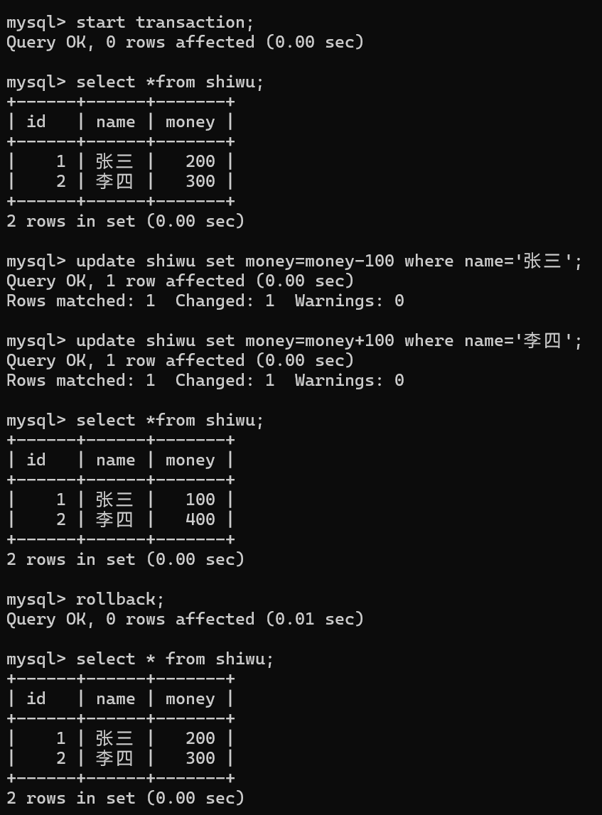 # 回滚当前事务,取消其更改