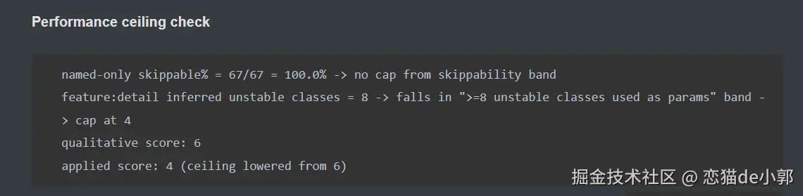 skippable%低于 50%,或者不稳定类的数量超过阈值,性能得分会强制"封顶"(例如最高只能给 4 分),无论其他地方写得再好也不行 - 知识图谱与官方文档锚定: 该项目维护了一份