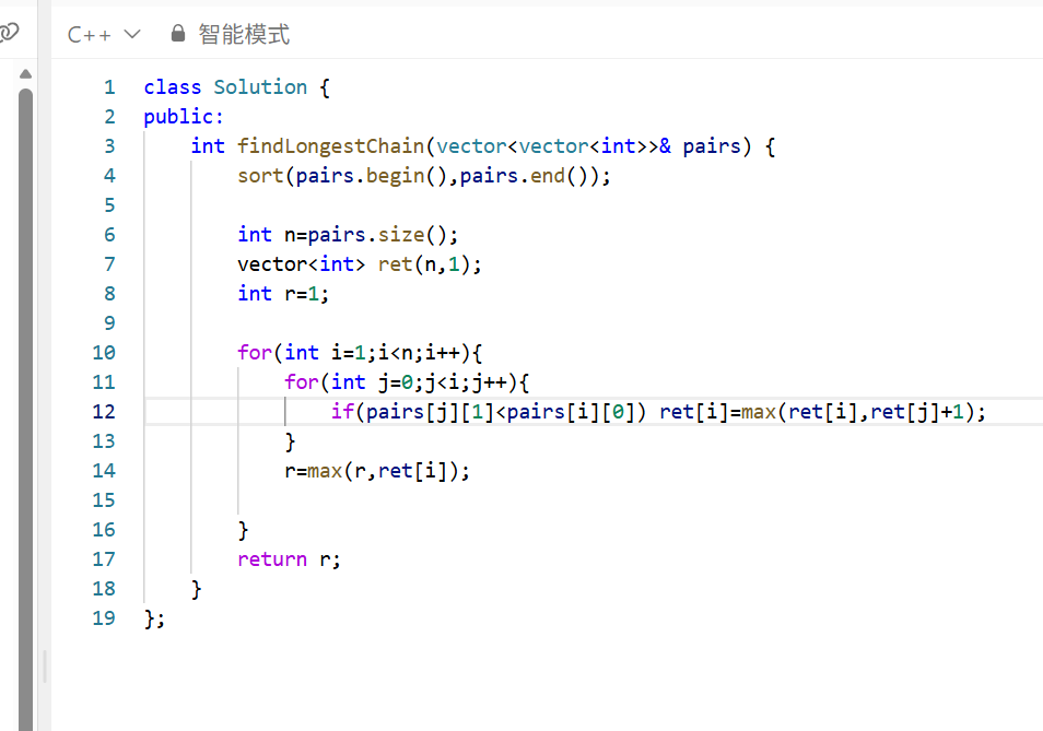 if(pairs[j][1]<pairs[i][0]) ret[i]=max(ret[i],ret[j]+1);