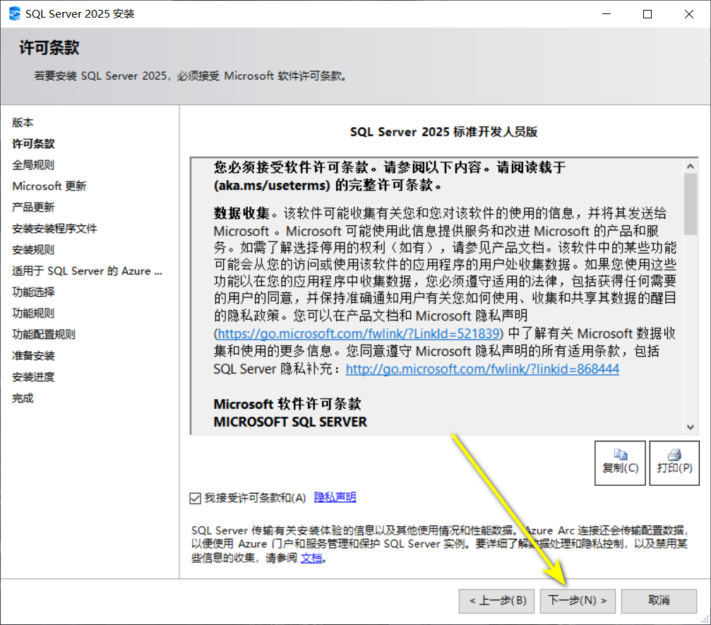 6.勾选【我接受许可条款】,点击【下一步】