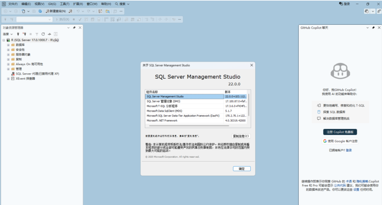 vector数据类型、向量函数与DiskAnn近似索引,支持相似性搜索,直接在库内处理 AI 嵌入数据,为 RAG、推荐系统等场景提供低延迟能力Microsoft Learn; - 内置 Copilot:SSMS 22 集成 GitHub Copilot,支持自然语言查询、T-SQL 生成与优化,开发效率翻倍Microsoft Learn;