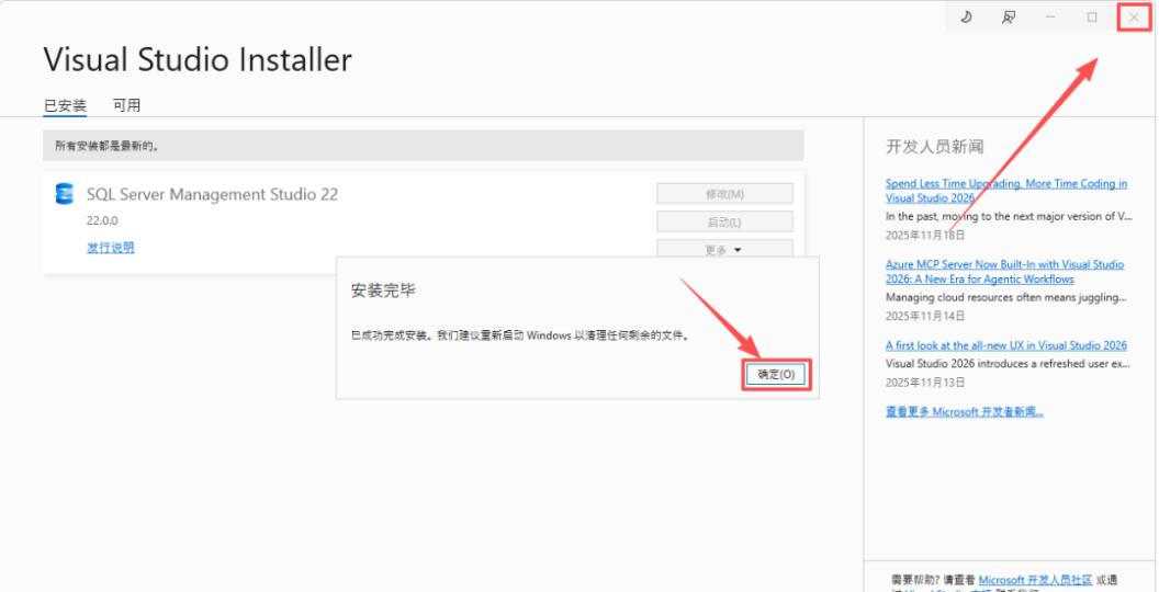 24.安装完成,点击【确定】,然后点击右上角的【X】关闭