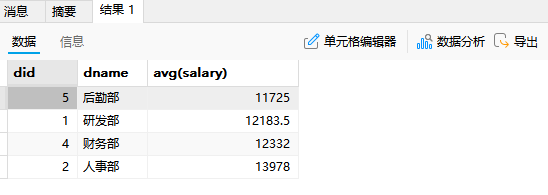 -- 查询t_employee和t_department表,按部门统计平均工资