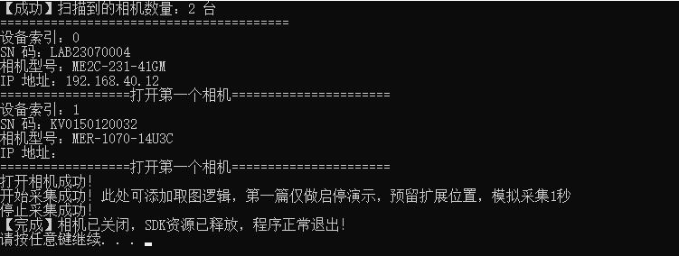 cout << "【完成】相机已关闭,SDK资源已释放,程序正常退出!" << endl;