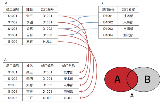 比如:员工表和部门表,这两个表依靠"部门编号"进行关联。