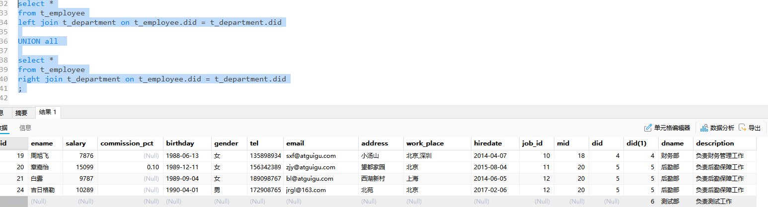- [三、UNION 和 UNION ALL](#三、UNION 和 UNION ALL)