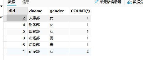 SELECT ename, did, COUNT(*)并GROUP BY did,会因为ename在组内不唯一而报错(only_full_group_by模式)。