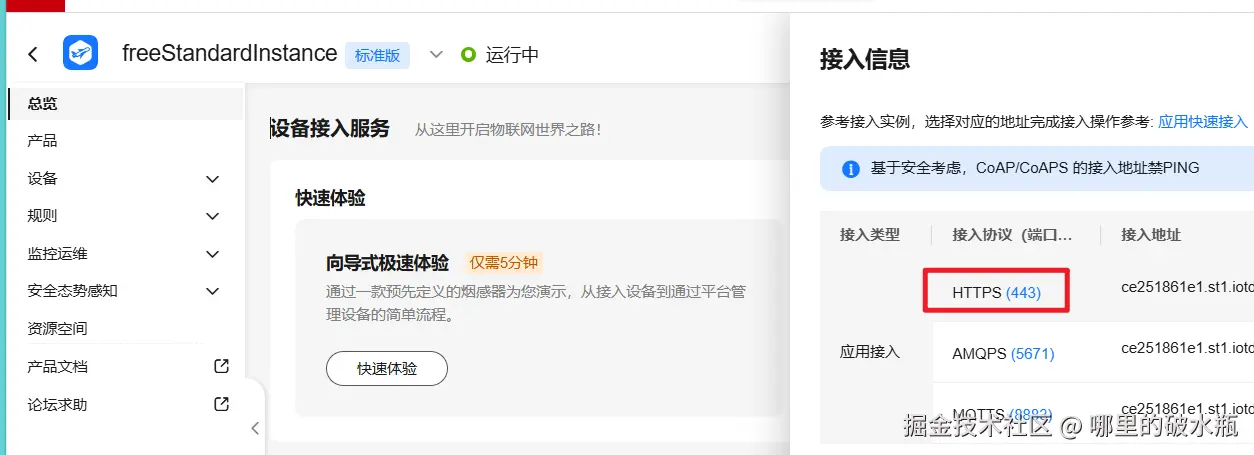 复制 HTTP 443 的地址 到配置文件的endpoint字段