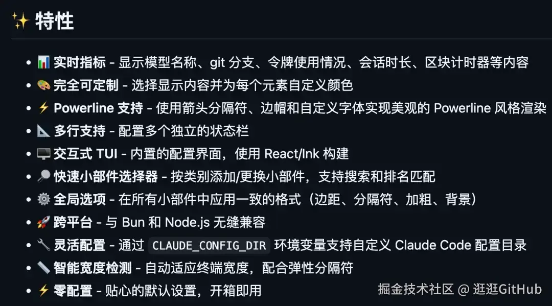 但 ccstatusline 在组件数量和自定义程度上确实挺全的。
