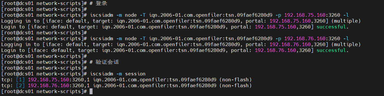 iscsiadm -m discovery -t st -p 192.168.75.160