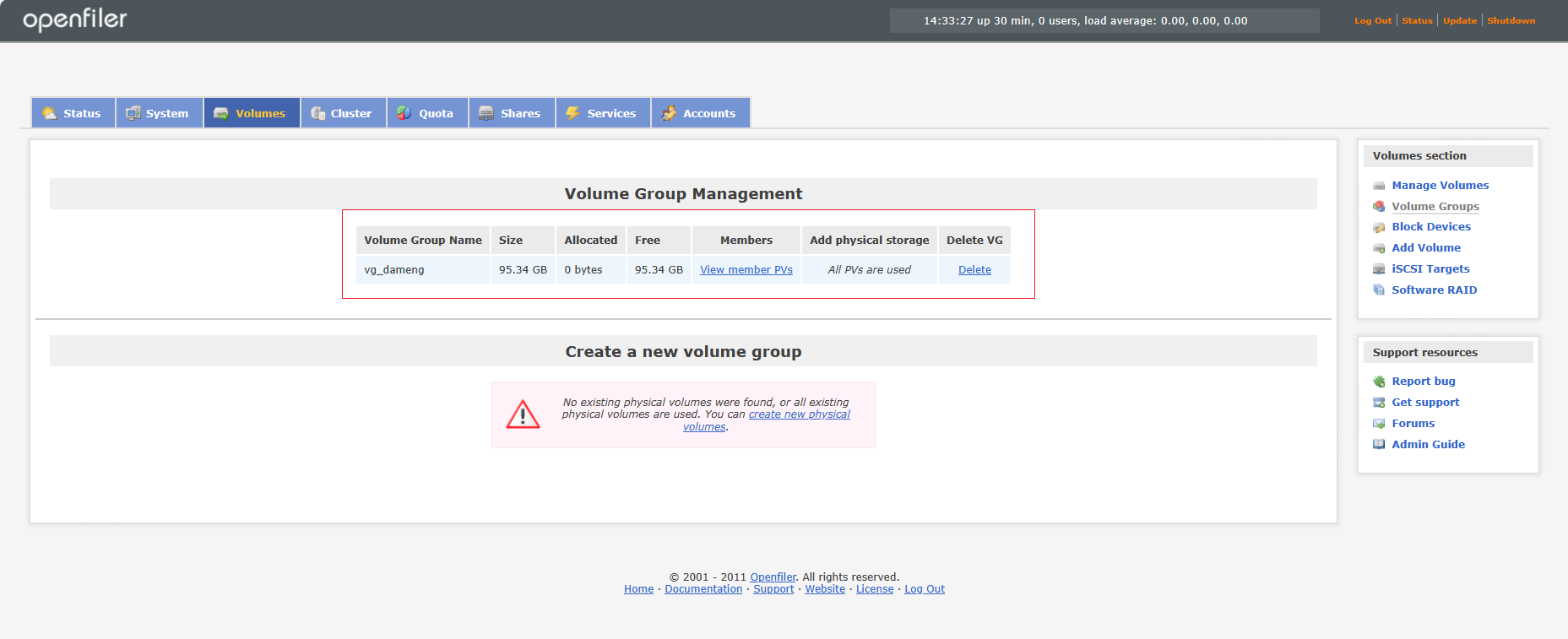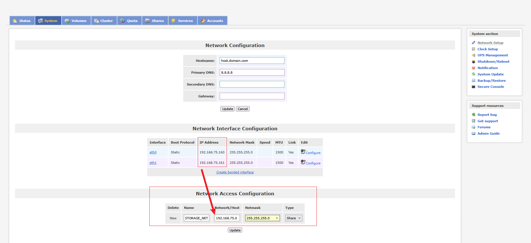 1.进入OpenFiler中的System,并且直接拉到页面的下方
