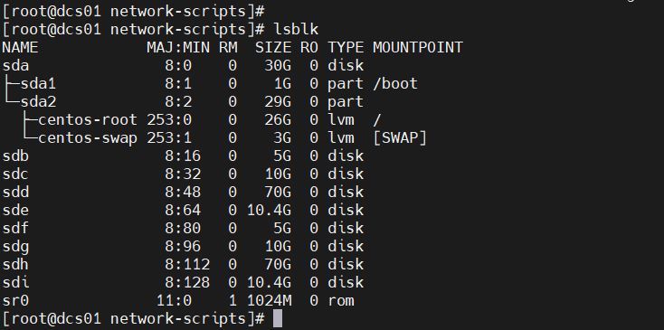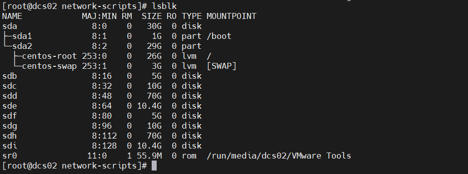 | ++++rczy_data++++ | /dev/sdf | /dev/sdg | 70G | 数据文件 |