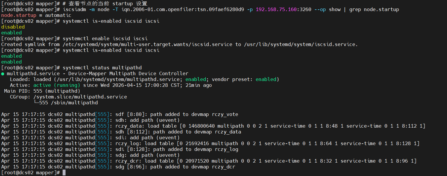 4.4.验证是否具备开机自动登陆并挂载多路径配置
