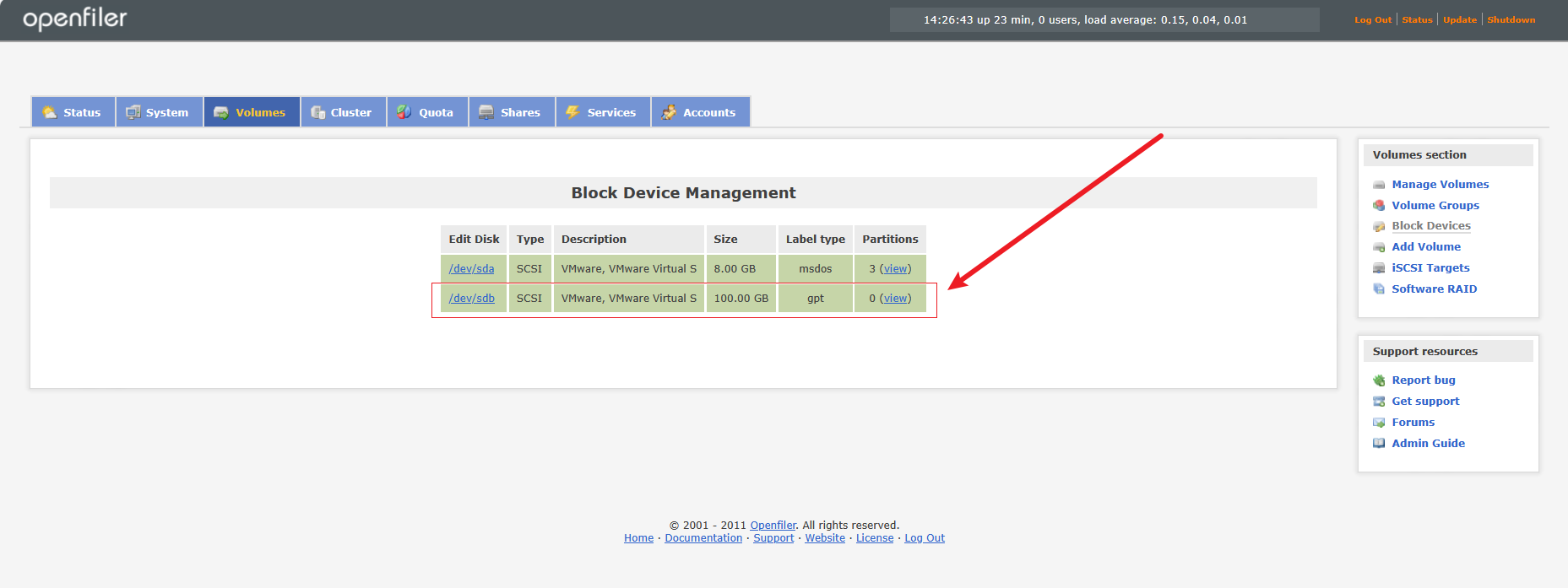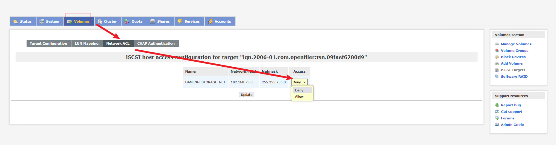 至此就可以在这个OpenFiler中看到被授权的网段了!!!
