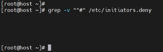 验证修改,筛选出该配置文件中没有注释的行:grep -v "^#" /etc/initiators.deny