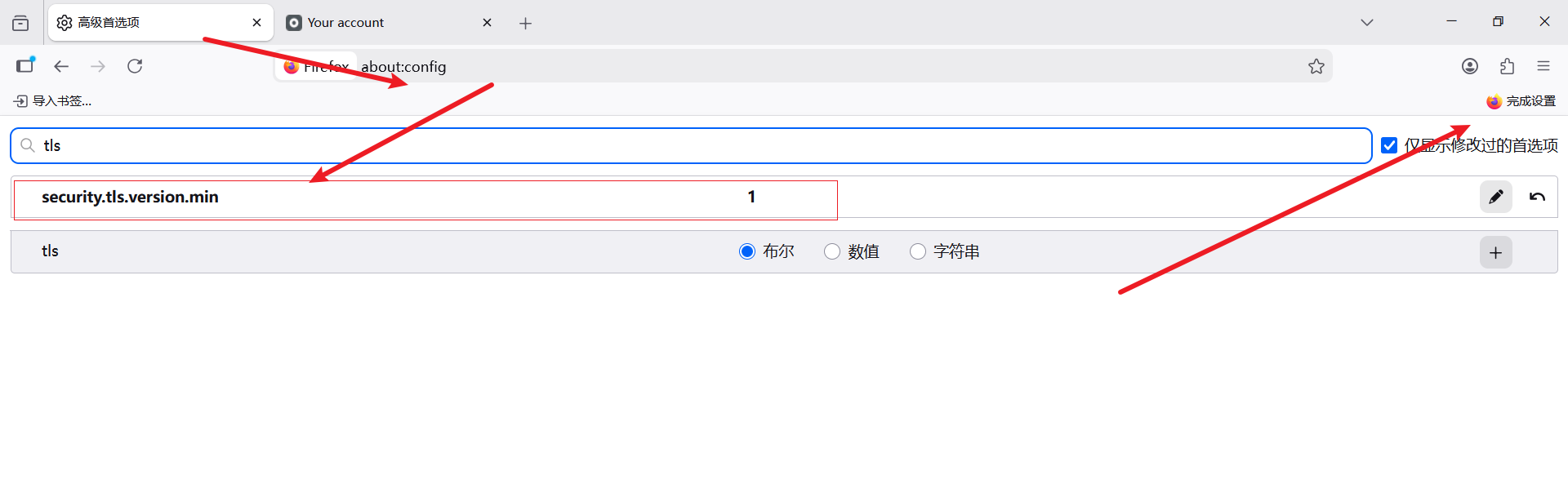 注意,这里需要使用火狐浏览器,并且调整一下TLS协议支持版本。