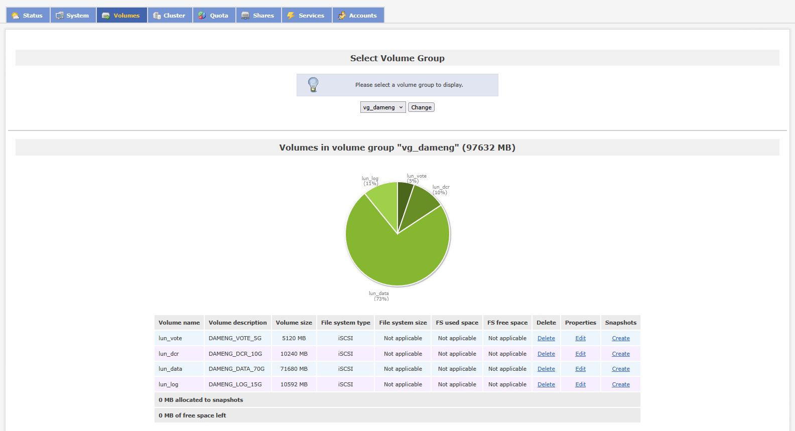 | lun_log | 15GB /13560MB | Filesystem:block(iSCSI,FC,etc) | DAMENG_LOG_15G | 标识Redo日志存储 |