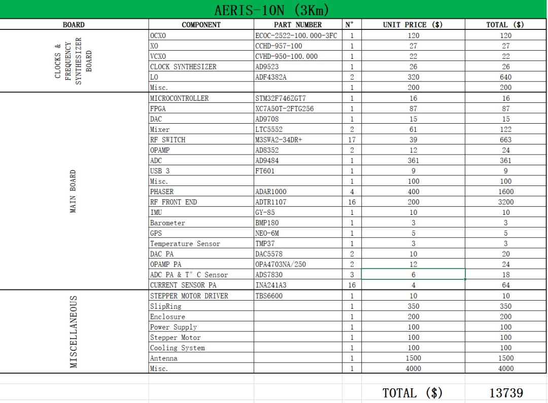 AERIS-10的主要子系统包括: