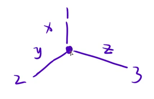 - 由于这个点被统计了3次,减去多余统计的2次:x+y+z-2(各个国家为了连到同一个汇合点,需要占用多少个 '.' 这个点被修了三次,实际上只需要修一次就够了)