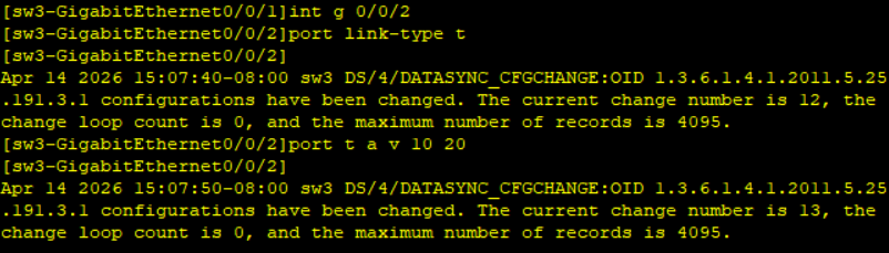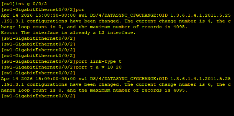 创建vlan 修改接口类型 放通vlan