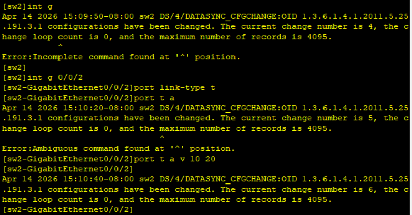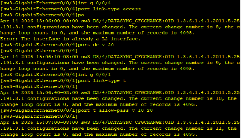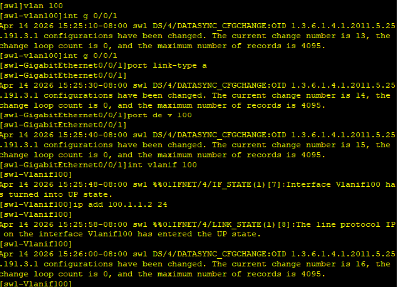 SW1 SW2 vlanif设置