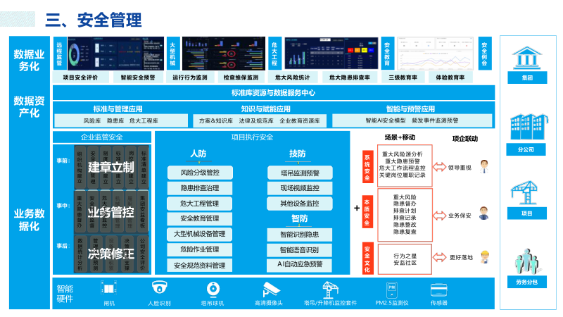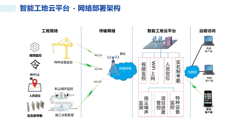 在建筑行业数字化转型与绿色低碳发展的双重驱动下,传统建造模式正朝着智能化、精细化、一体化方向加速升级。本方案以智慧工地云平台 为核心,深度融合物联网、人工智能、BIM、大数据与 5G 技术,围绕施工现场人、机、料、法、环 全要素,构建覆盖人员管理、安全管控、质量监督、绿色施工、设备监测、物料管控的全场景智能体系。通过软硬件协同、数据互通、预警闭环与决策可视化,全面提升项目管理效率、降低安全风险、优化资源配置,助力建筑工程实现智慧建造、精益施工、绿色发展,为行业高质量发展提供坚实技术支撑与落地实践路径。