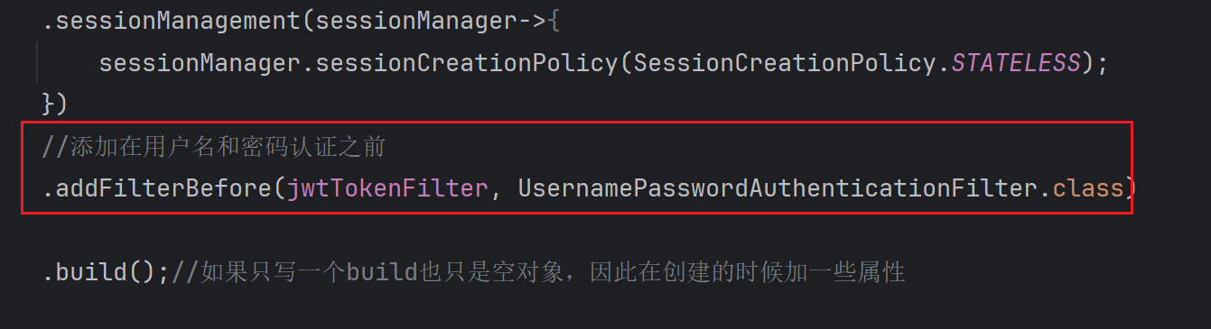 这个时候,我们想到了过滤器,我们可以定义个过滤器,在这个过滤器中来获取请求头,验证这个token是否一致,同时因为spring security底层也是很多的过滤器链,定义完成后,加入到安全框架的过滤器链中就好了。