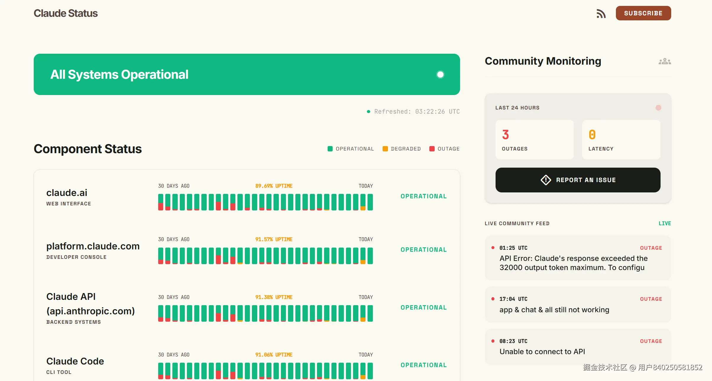 上面提到的面板:claudestatus.com,社区维护,非官方,与 Anthropic 无任何从属