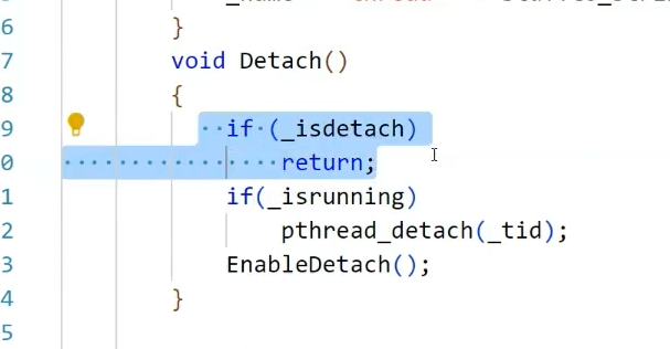 可以提前分离之后分离,不管提前之后,只要被分离了就return,如果已经运行了,直接调用pthread_detach主动分离,如果没有运行直接把标志位置一,