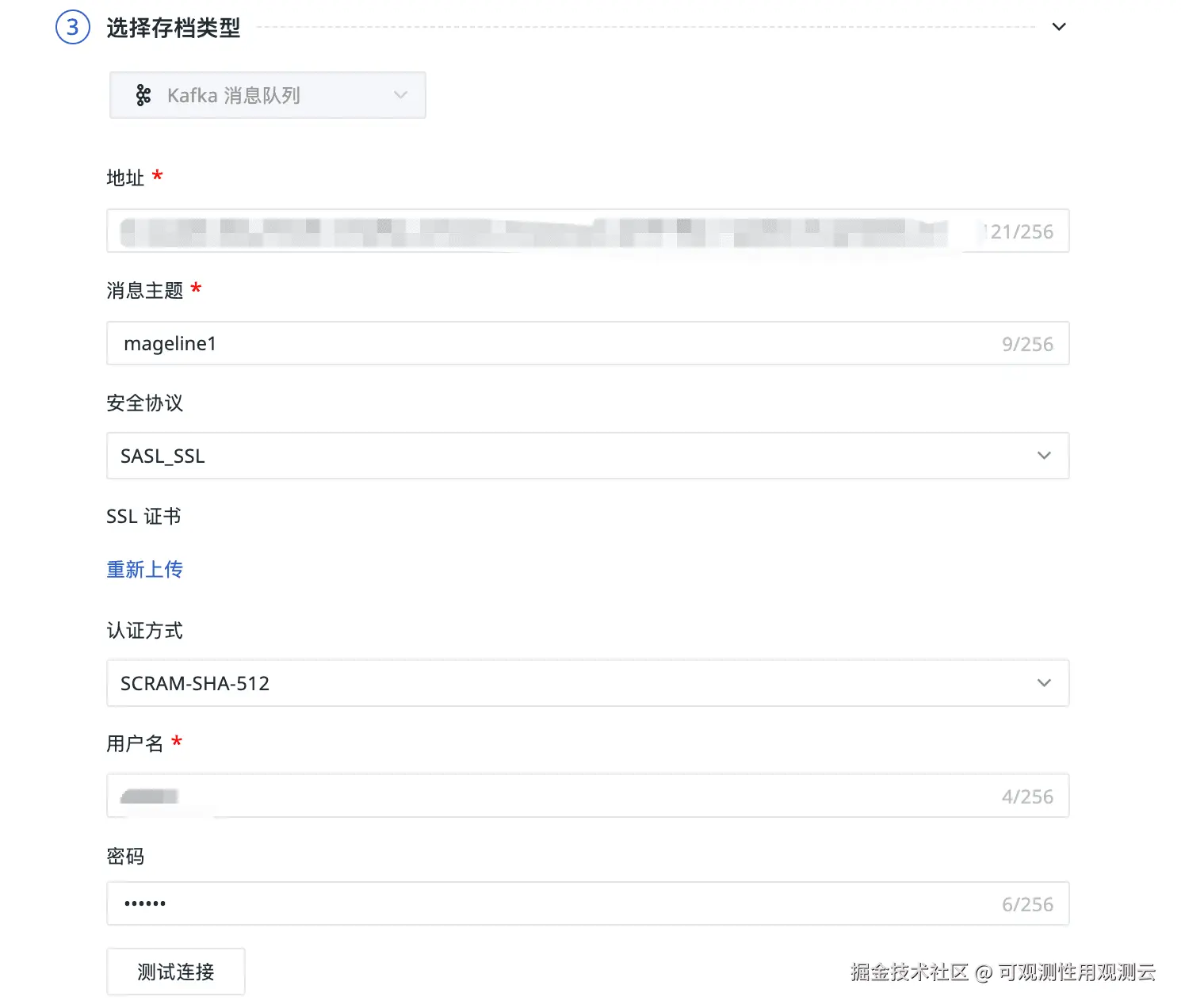 3、可以点击"测试连接"进行配置的验证测试