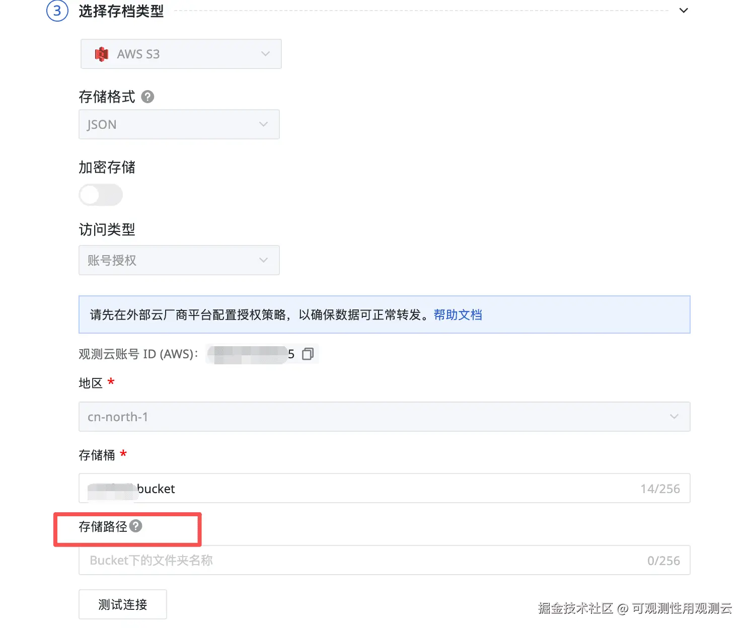 - 云平台密钥安全管控,配置对象存储,需输入对应云平台 AK/SK 信息,请严格遵循最小权限原则,仅为观测云分配需要的权限,禁止授予全权限,避免密钥泄露导致的数据篡改、泄露风险,密钥需由专人保管,定期更换
