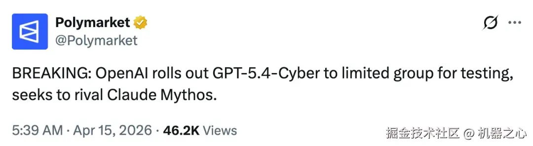 在一些行业人士看来,此次 GPT-5.4-Cyber 小范围测试,是冲着 Anthropic 的 Claude Mythos 而来的,后者一周前刚刚发布。