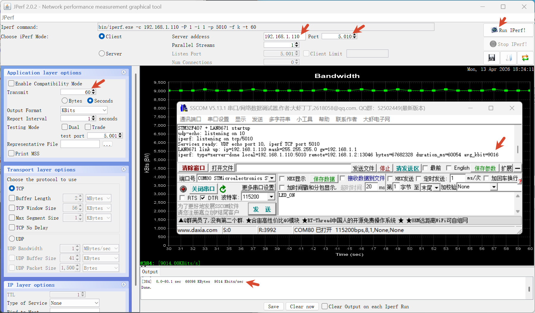 iperf.exe -c 192.168.1.110 -i 1 -p 5010 -t 10