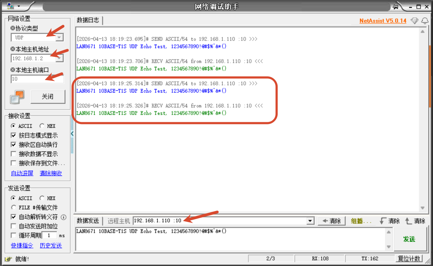 - MCU, 192.168.1.110, PLCA, Node ID 3, Link up 后是 10M half-duplex