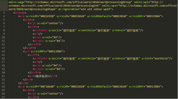 (二) Word 2007中document.xml格式分析