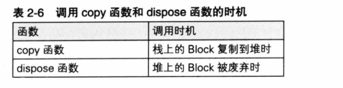 在 Objective-C 中,C语言结构体不能含有附有__strong 修饰符的变量。因为编译器不知道应何时进行C语言结构体的初始化和废弃操作,不能很好地管理内存。但是 Objective-C 的运行时库能够准确把握Block 从栈复制到堆以及堆上的Block 被废弃的时机,因此 Block 用结构体中即使含有附有_ _ strong 修饰符或_ _ weak 修饰符的变量,也可以恰当地进行初始化和废弃。为此需要使用在 _ _ main_block _ dese_0结构体中增加的成员变量 copy和dispose,以及作为指针赋值给该成员变量的_main_block copy_0函数和 _ _ main_block_dispose 0函数。