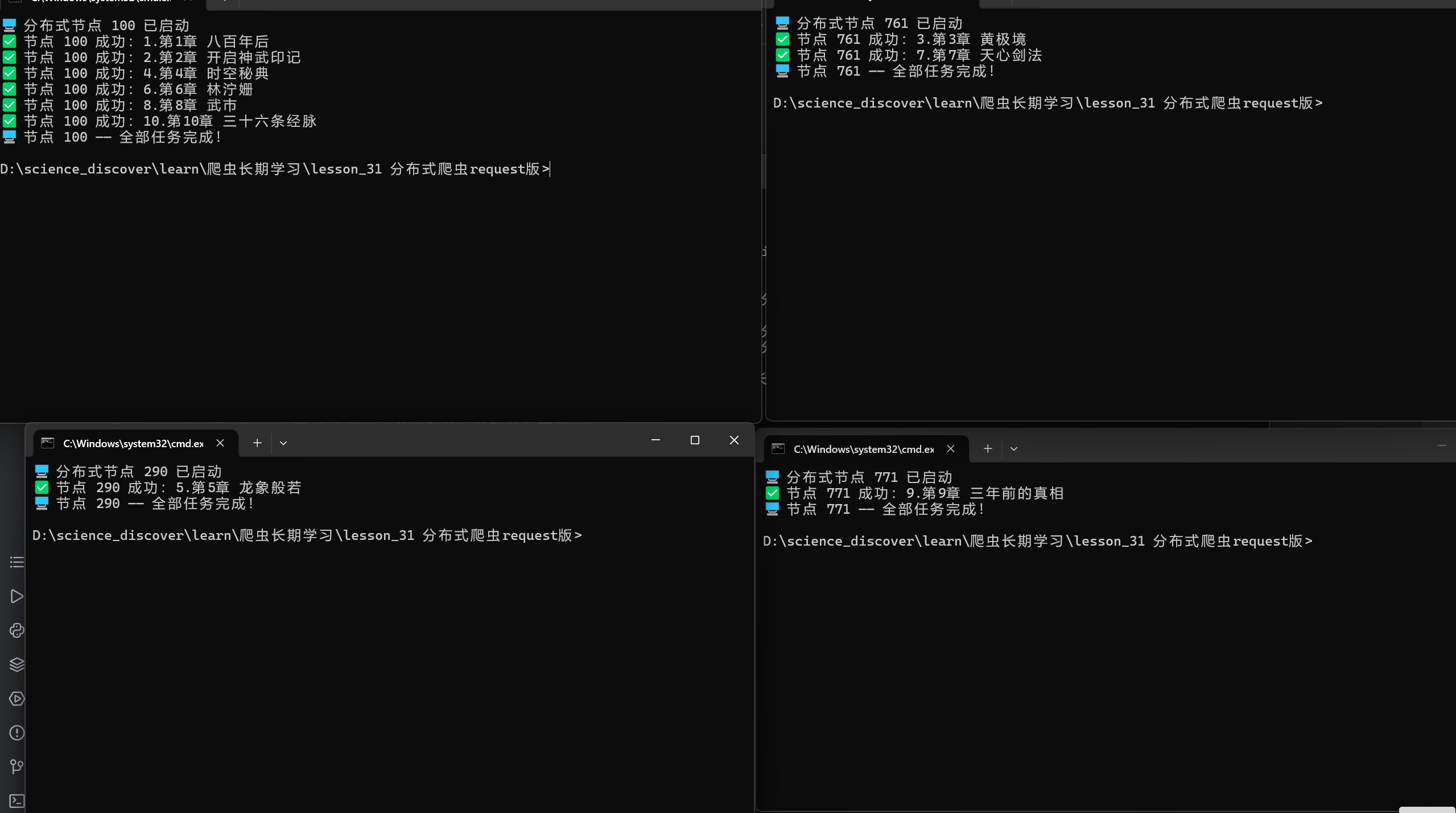 print("\n🚀 正在打开4个分布式爬虫终端,开始爬取...")
