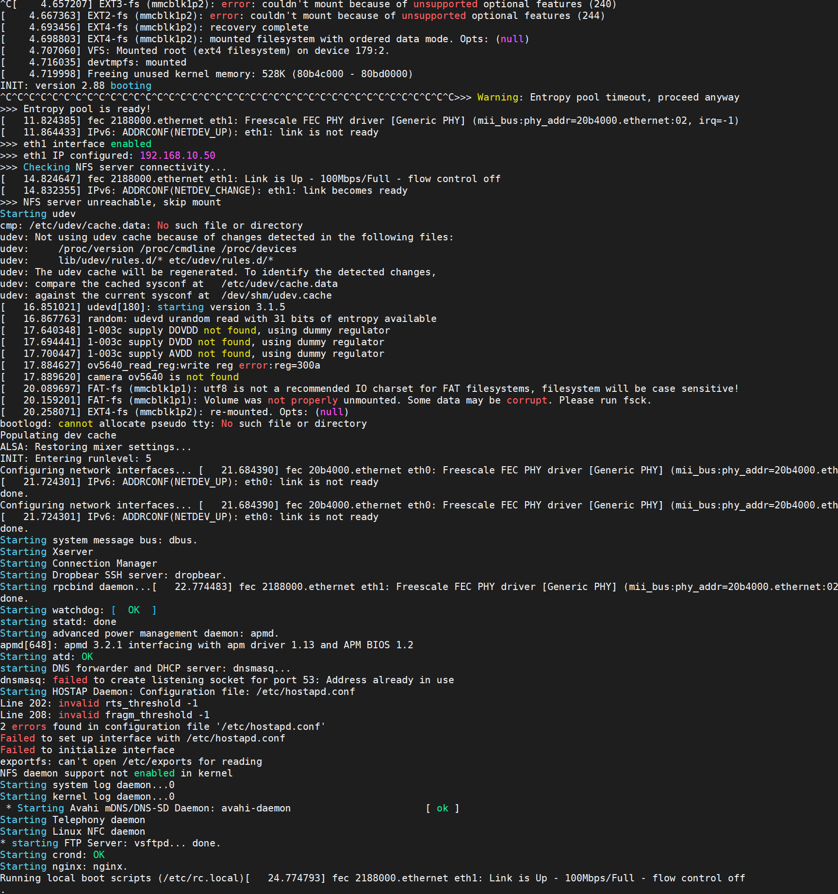 但是经过测试发现每次Linux一进系统可以短暂的运行几秒钟,然后就卡死了。经过分析得知:Linux的网络子系统、网卡驱动、DHCP等等都依赖于随机数熵池。刚刚开机时候,熵池是空的,网络子系统属于半初始化状态,而我们在此时进行了rcS脚本中的指令,产生了崩溃!即命令行走不动,体现卡住的特点。